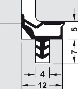 - Instalación Dim.: Groove: 4 x 7 mm, espacio sorprendente: 5 mm, ancho de reembolso: 12 mm